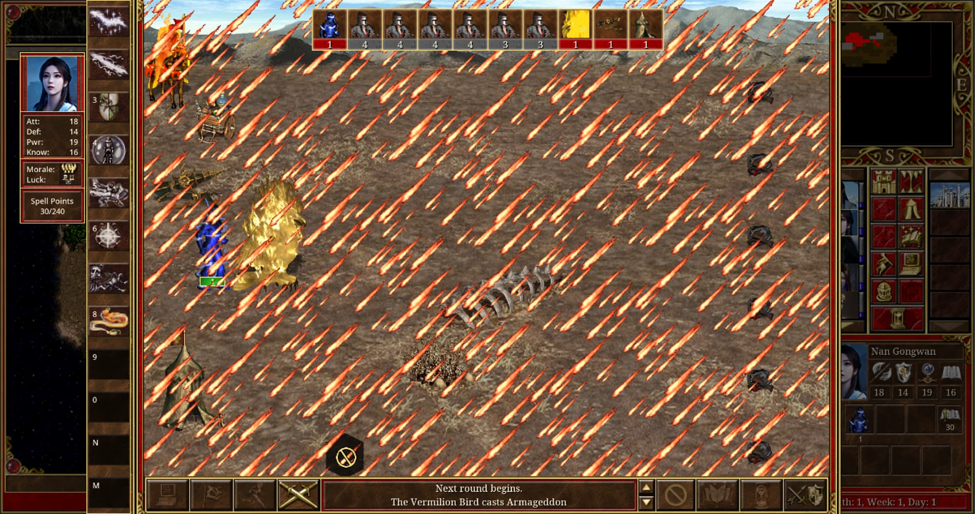 Launch lightning to attack the enemy troops. Meanwhile, the targeted enemy troops will be paralyzed and unable to take actions for one round.