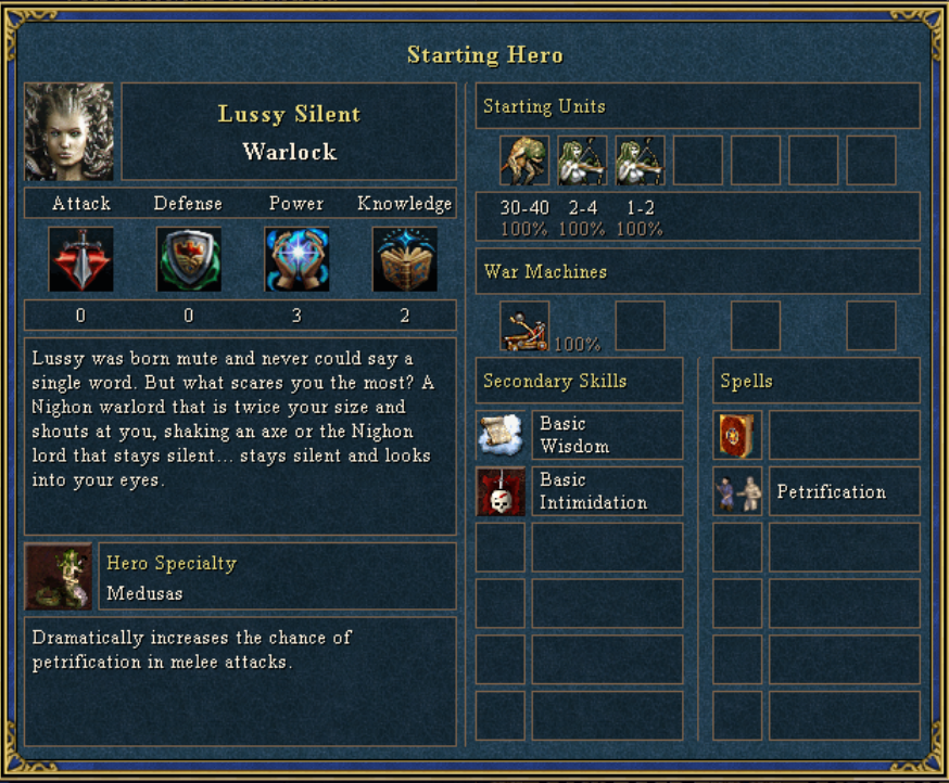 Lussy Silent Lussy was born mute and never could say a single word. But what scares you the most? A Nighon warlord that is twice your size and shouts at you, shaking an axe or the Nighon lord that stays silent... stays silent and looks into your eyes. female Medusas